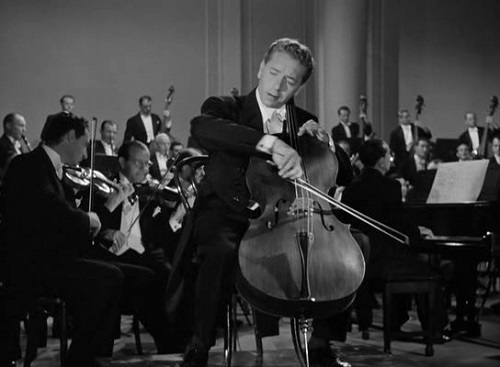 The silly story revolves around Hollenius wielding the power of his music to get Novak to play his Cello Concerto, for which Korngold provides appropriately acidic/melodramatic/romantic music. The cellist is Eleanor Aller; some remarkably fine Chopin (or is it Beethoven? I've forgotten already), not very convincingly mimed by Davis at the keyboard for a wedding party scene, is played by the great Shura Cherkassky.
