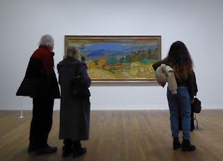 I feel enriched by two very different exhibitions. Astonished by so much critical negativity surrounding the huge Pierre Bonnard show at Tate Modern; all artists I know, including my beloved friend Ruth Addinall with whom I went, have nothing but praise for the master. What are the claims? He didn't reflect the upheavals of his times; he couldn't paint animals; it's only about colour. Stuff and nonsense. In the first case, just focus on what he did cover - mostly his various homes and women he knew well - and ask if he succeeded. My answer would be, more than I could have imagined before I visited. To catch the 'thing in itself'ness of people and animals does not require literal forms - these are forms in motion. And it's not just about colour; the ability to see different angles of a scene and to give them depth, even (this surprised me) profundity remains consistent in his work from 1907 up to his death in 1947. I loved all the works on display to varying degrees, with the exception of a few in the last room. And the very first of his Vernon rooms-and-landscapes from 1914 is a stunner, complete with dachshund.