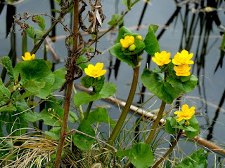 First time I'd been here in the spring, so I was surprised to come across more fritallaries sharing swampy ground with more marsh marigolds on the south walk.